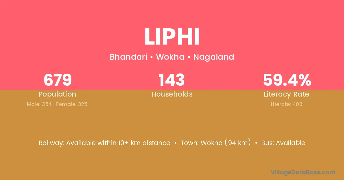 Wokha (94 km) is the nearest town to Liphi village for major economic activities and is located approximately 94 km away.