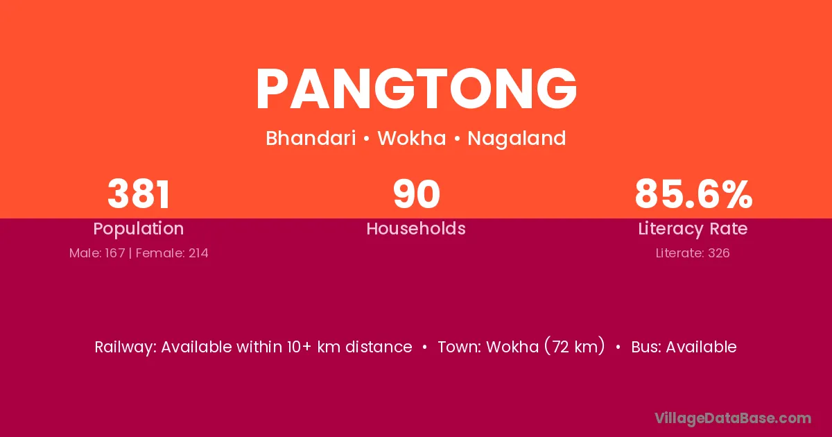 Pangtong village has a total population of 381 people, of which 167 are males and 214 are females.
