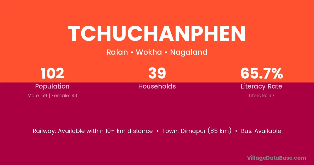 Dimapur (85 km) is the nearest town to Tchuchanphen village for major economic activities and is located approximately 85 km away.