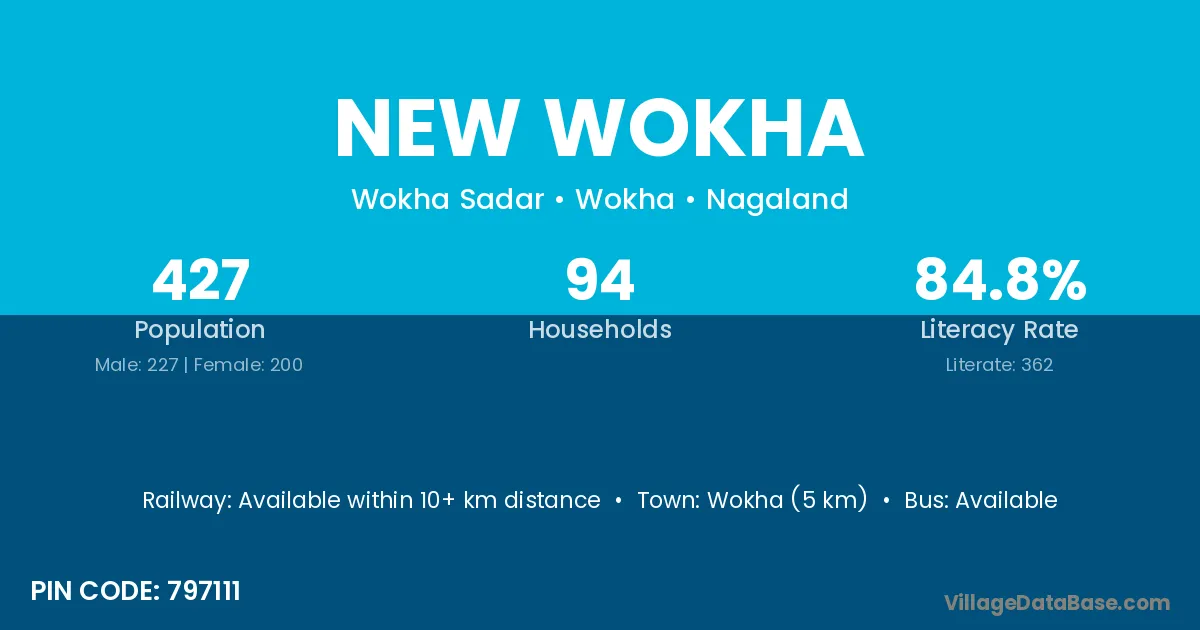 New Wokha village has a total population of 427 people, of which 227 are males and 200 are females.