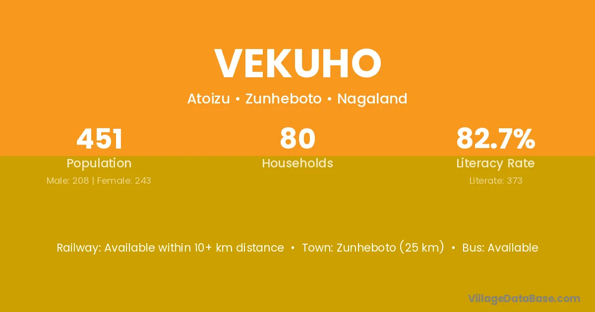 Vekuho village has a total population of 451 people, of which 208 are males and 243 are females.