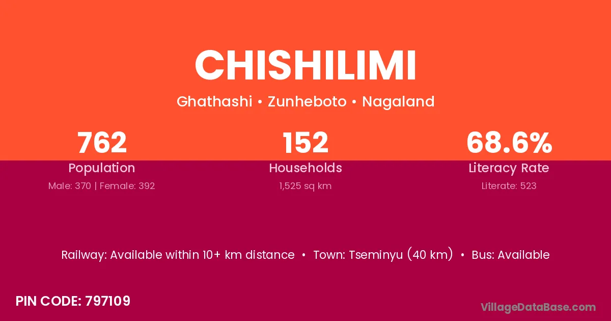 Chishilimi village has a total population of 762 people, of which 370 are males and 392 are females.