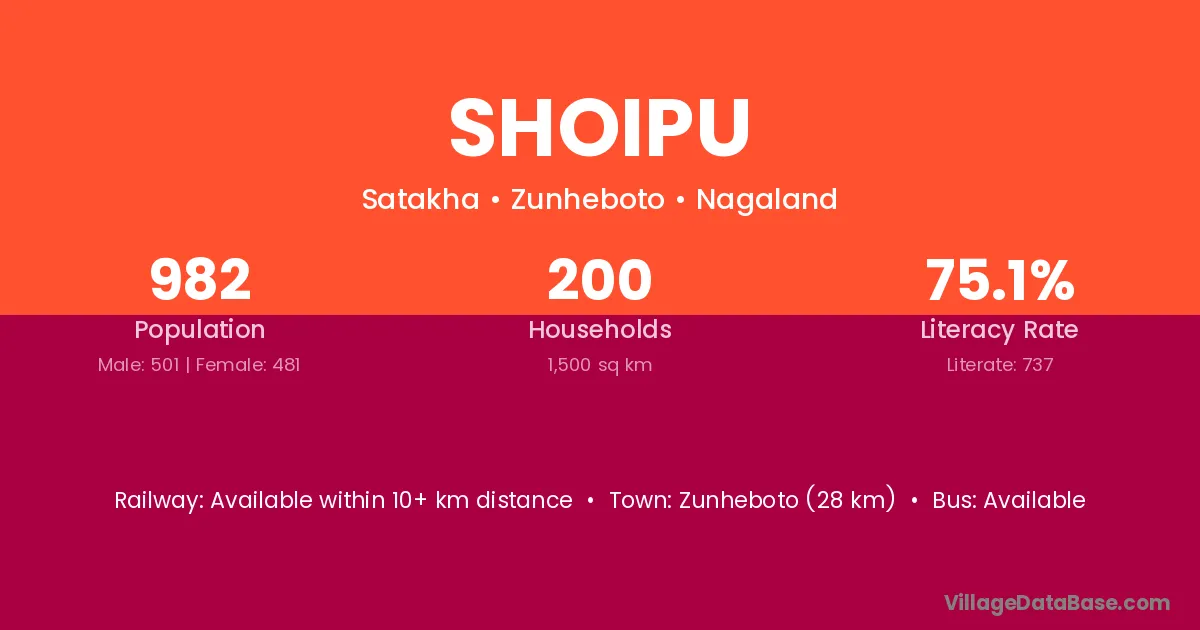 Zunheboto (28 km) is the nearest town to Shoipu village for major economic activities and is located approximately 28 km away.