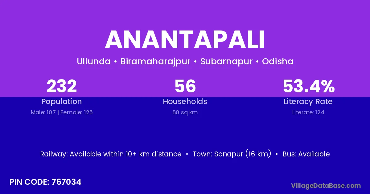 Athamallik (10 km) is the nearest town to Anantapali village for major economic activities and is located approximately 10 km away.