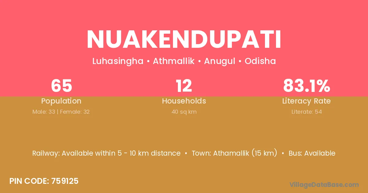 Nuakendupati village has a total population of 65 people, of which 33 are males and 32 are females.