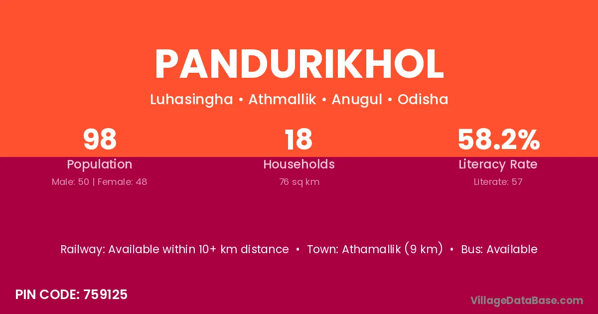 Pandurikhol village has a total population of 98 people, of which 50 are males and 48 are females.