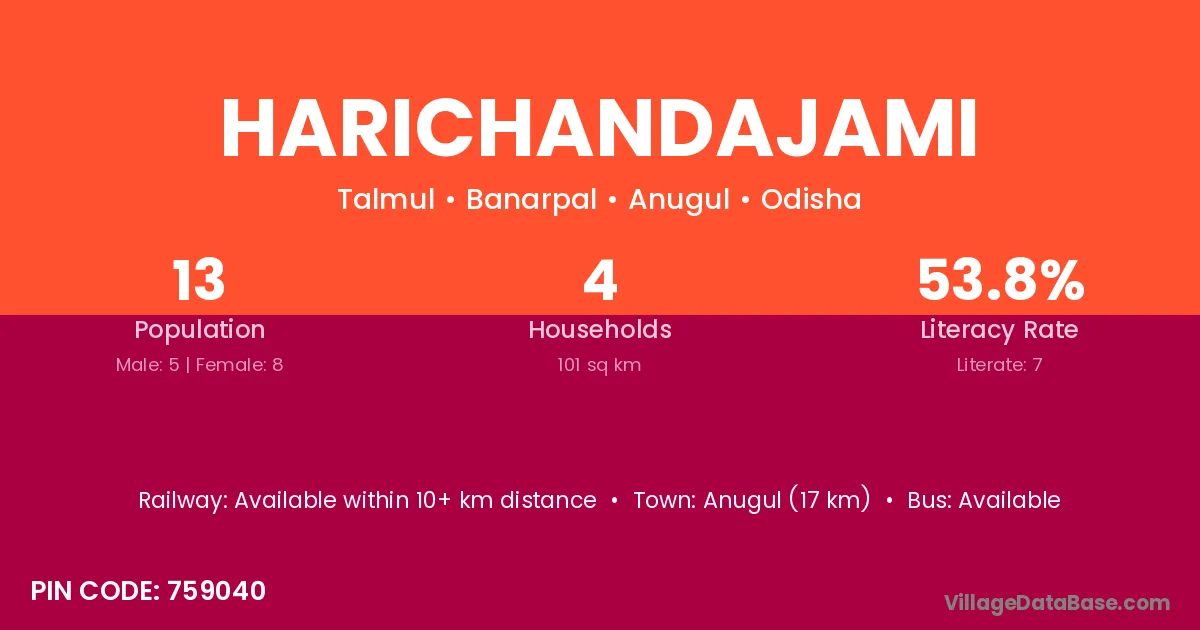 Harichandajami village has a total population of 13 people, of which 5 are males and 8 are females.