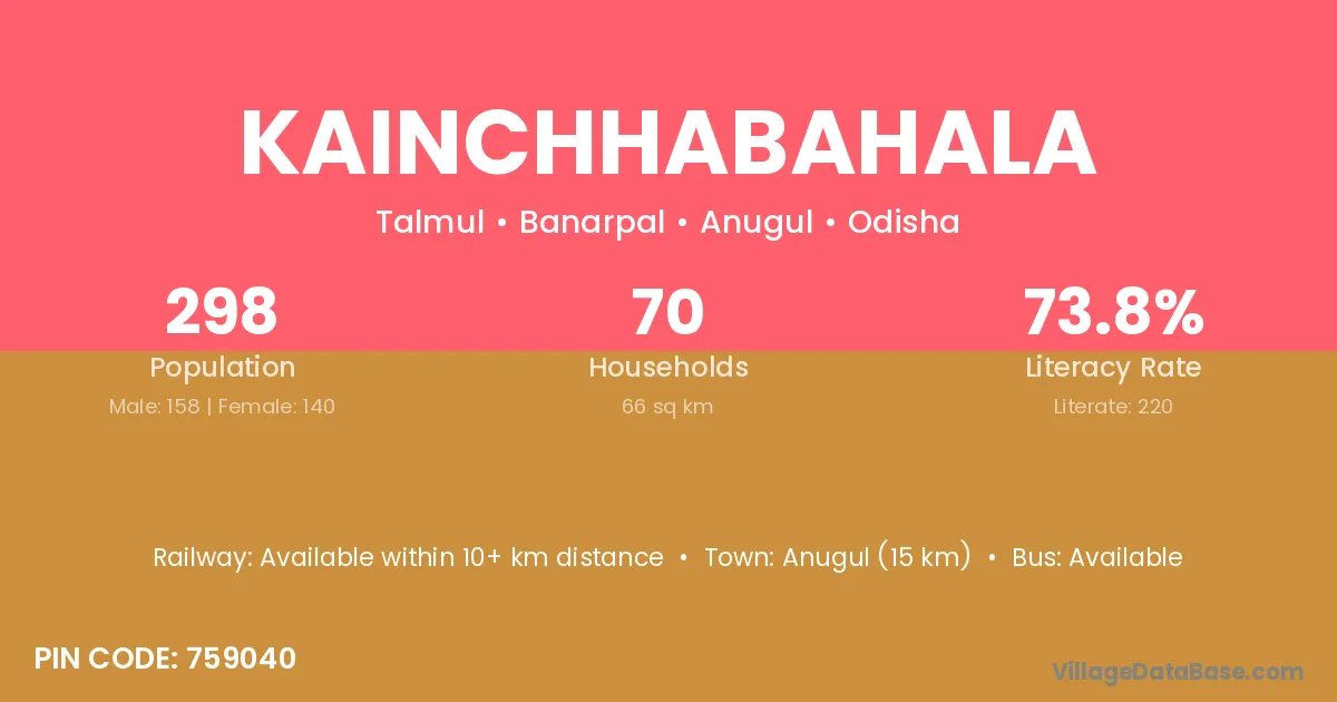Anugul (15 km) is the nearest town to Kainchhabahala village for major economic activities and is located approximately 15 km away.