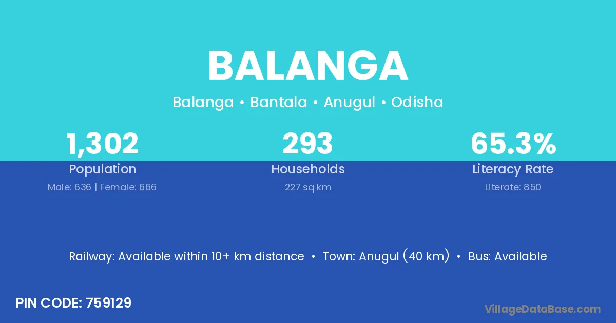 Anugul (40 km) is the nearest town to Balanga village for major economic activities and is located approximately 40 km away.