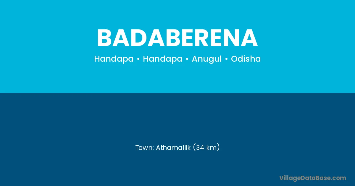 Anugul (49 km) is the nearest town to Badaberena village for major economic activities and is located approximately 49 km away.