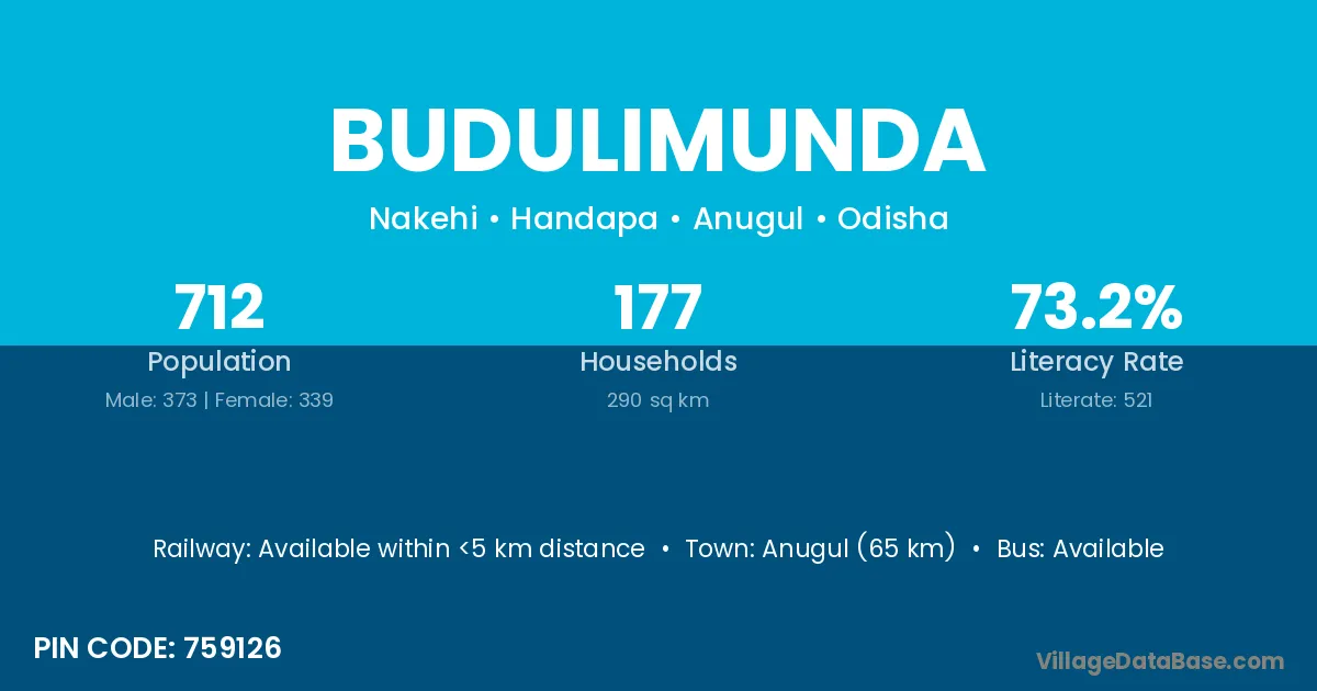 Anugul (65 km) is the nearest town to Budulimunda village for major economic activities and is located approximately 65 km away.