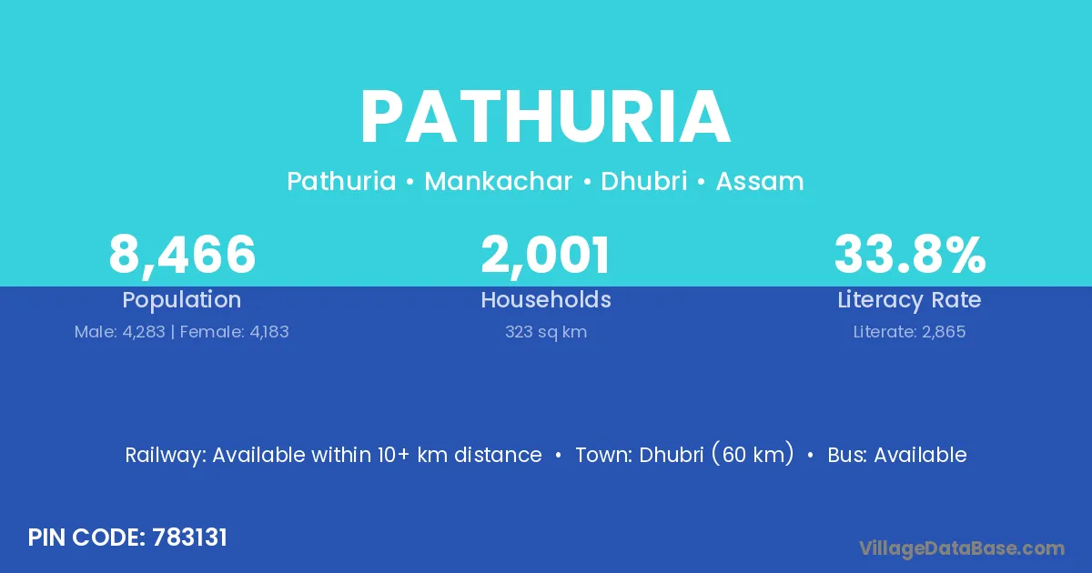 Anugul (11 km) is the nearest town to Pathuria village for major economic activities and is located approximately 11 km away.
