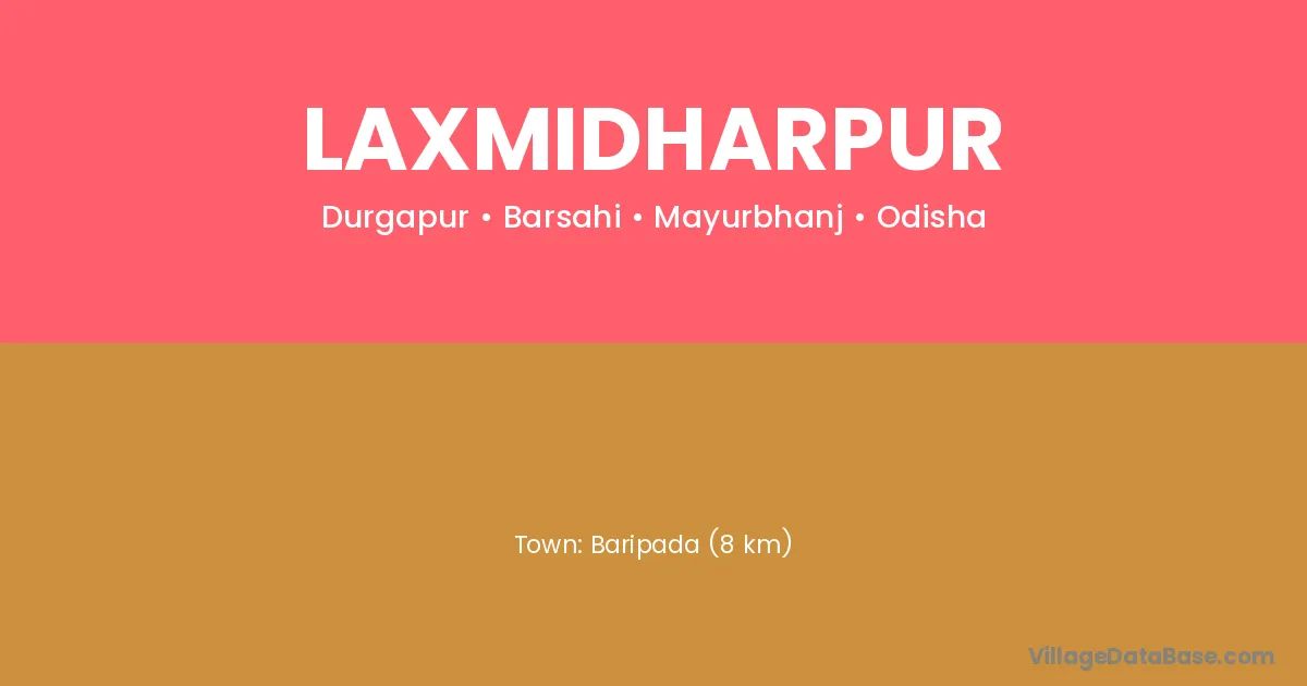 Anugul (33 km) is the nearest town to Laxmidharpur village for major economic activities and is located approximately 33 km away.