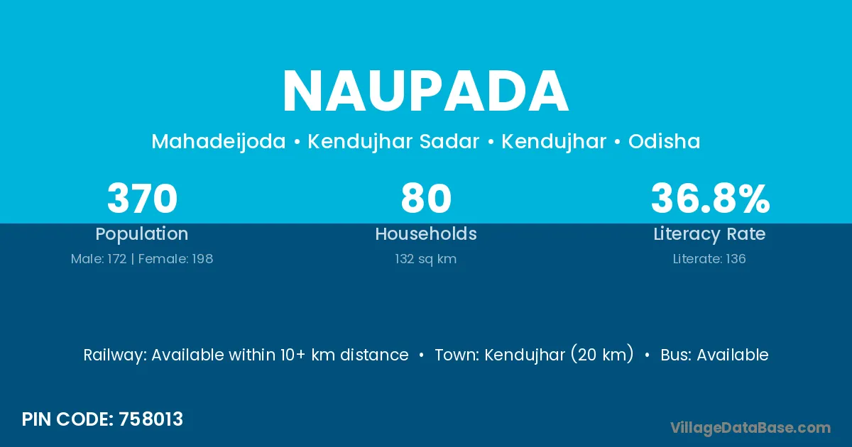 Anugul (40 km) is the nearest town to Naupada village for major economic activities and is located approximately 40 km away.
