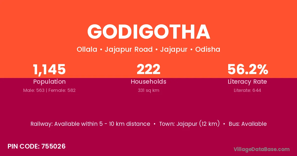 Godigotha village has a total population of 129 people, of which 68 are males and 61 are females.