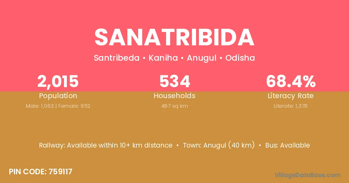 Anugul (40 km) is the nearest town to Sanatribida village for major economic activities and is located approximately 40 km away.