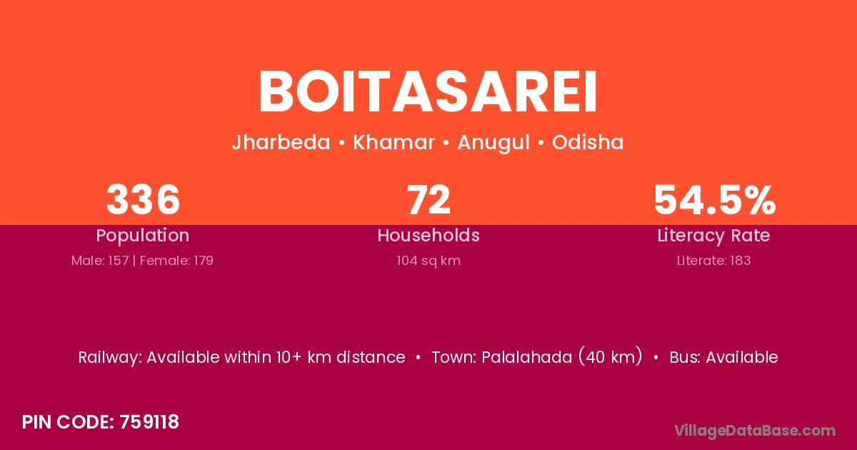 Boitasarei village is located in the Khamar Tehsil of the Anugul district in Odisha .