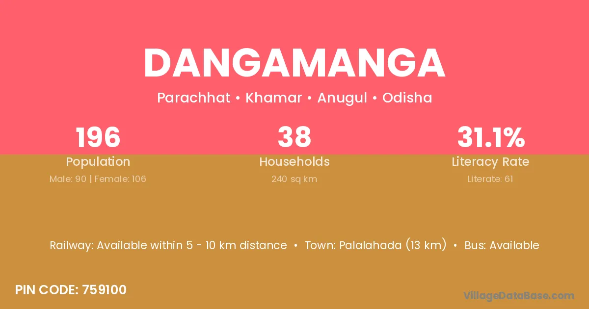 Palalahada (13 km) is the nearest town to Dangamanga village for major economic activities and is located approximately 13 km away.