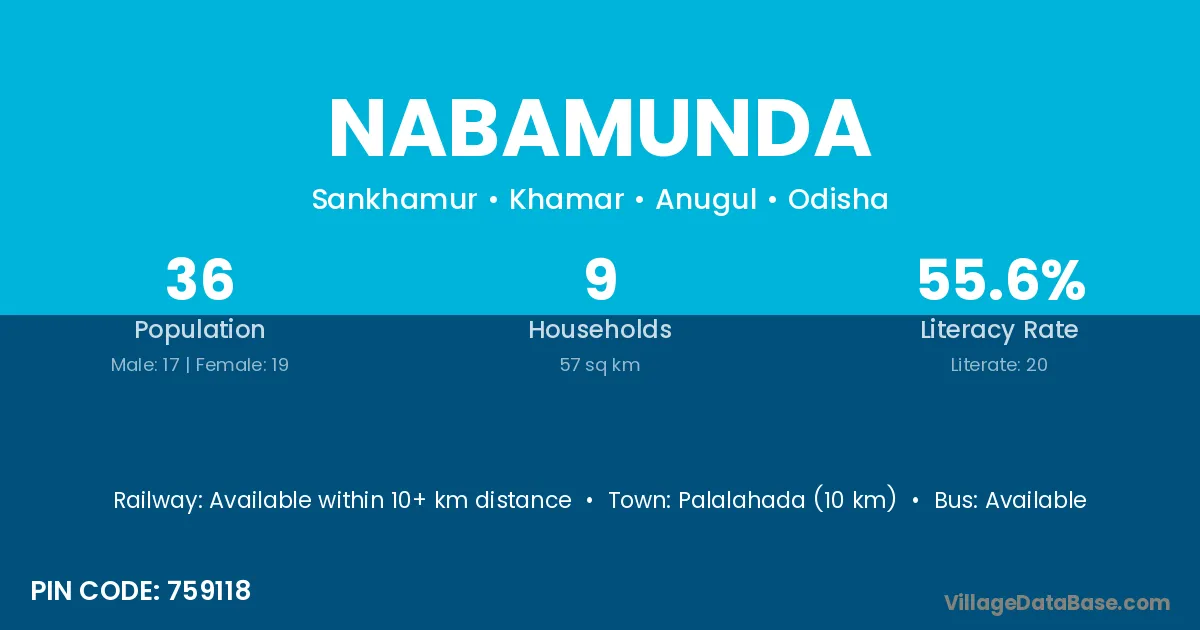 Nabamunda village is located in the Khamar Tehsil of the Anugul district in Odisha .