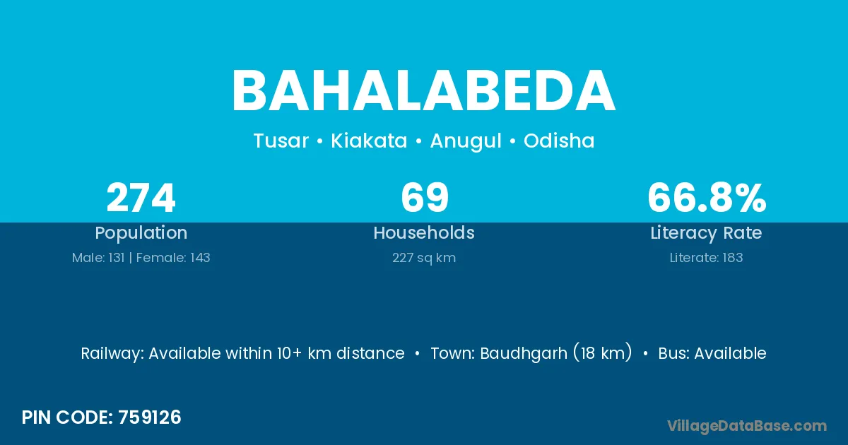 Baudhgarh (18 km) is the nearest town to Bahalabeda village for major economic activities and is located approximately 18 km away.