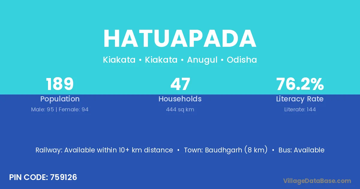 Baudhgarh (8 km) is the nearest town to Hatuapada village for major economic activities and is located approximately 8 km away.
