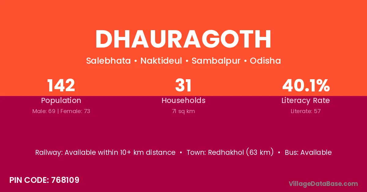 Baudhgarh (39 km) is the nearest town to Dhauragoth village for major economic activities and is located approximately 39 km away.