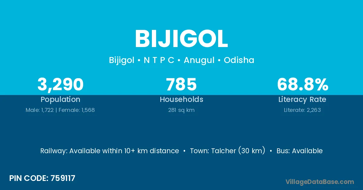Talcher (30 km) is the nearest town to Bijigol village for major economic activities and is located approximately 30 km away.