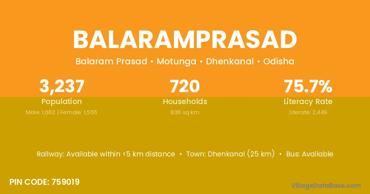 Anugul (12 km) is the nearest town to Balaramprasad village for major economic activities and is located approximately 12 km away.