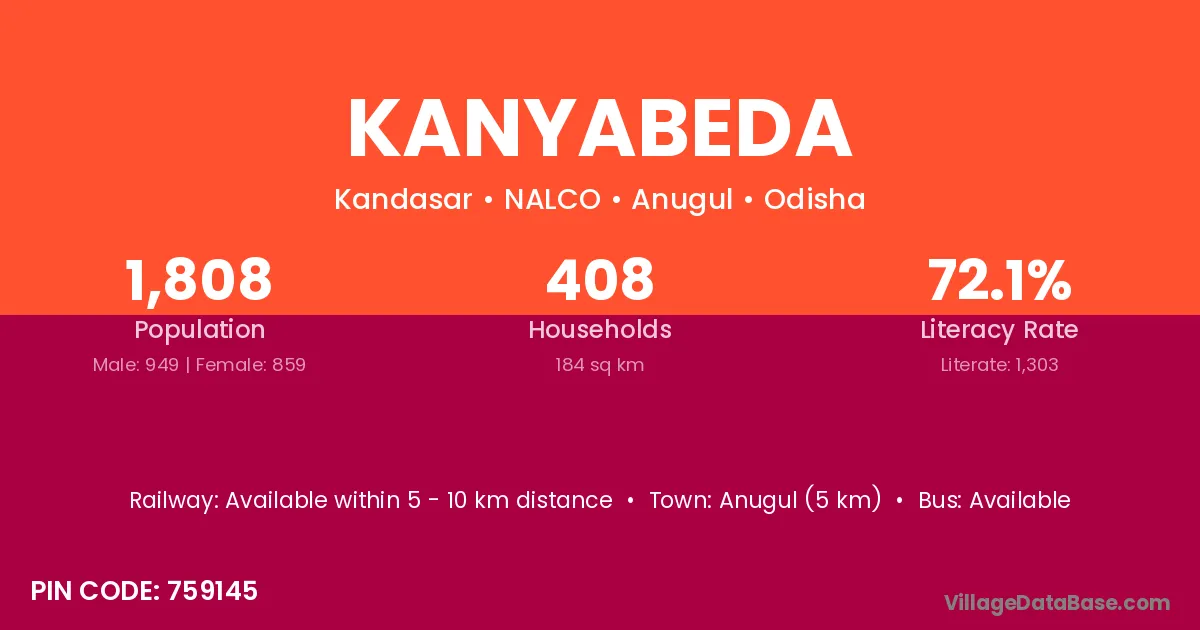 Anugul (5 km) is the nearest town to Kanyabeda village for major economic activities and is located approximately 5 km away.