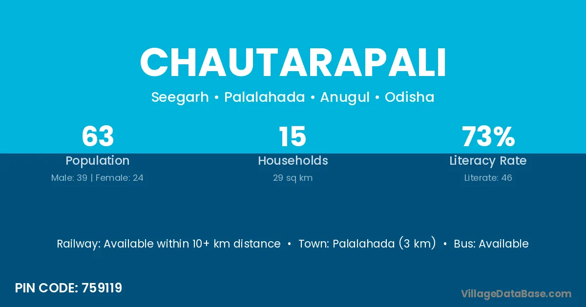 Chautarapali village has a total population of 63 people, of which 39 are males and 24 are females.