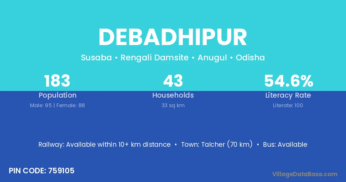 Talcher (70 km) is the nearest town to Debadhipur village for major economic activities and is located approximately 70 km away.