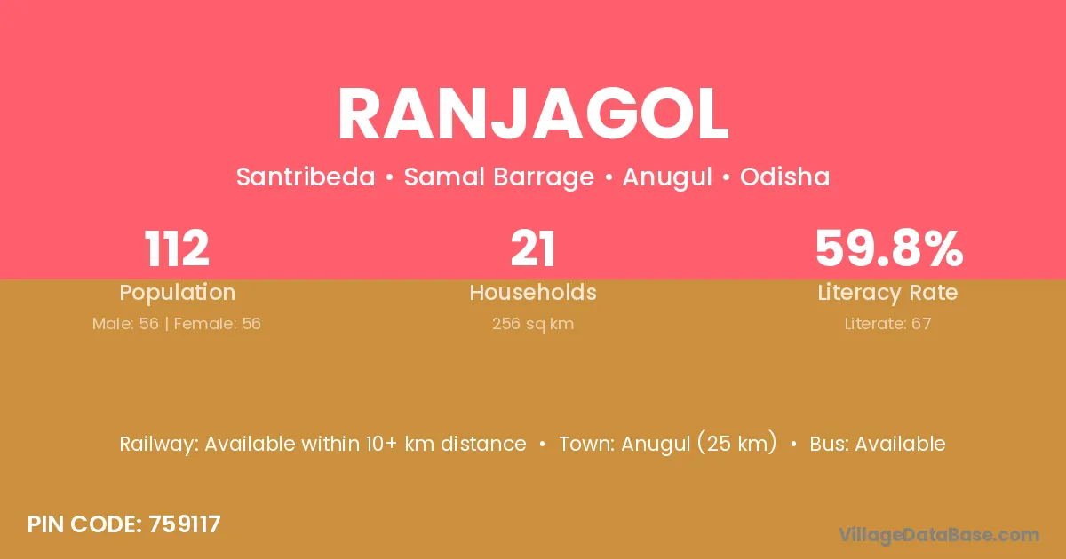 Anugul (25 km) is the nearest town to Ranjagol village for major economic activities and is located approximately 25 km away.