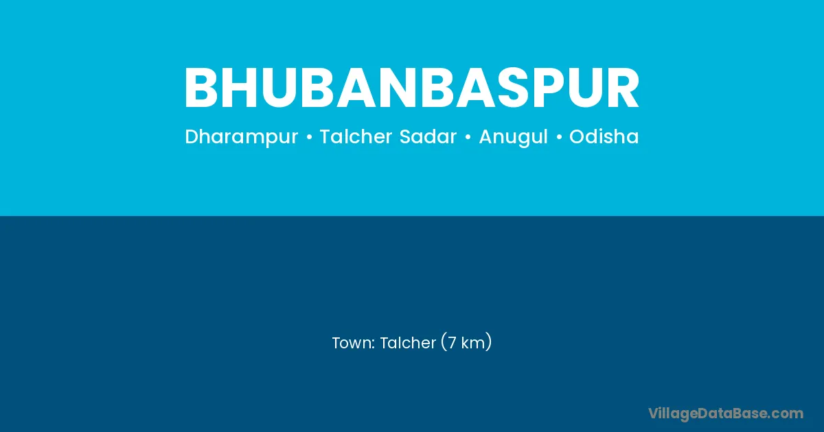 Talcher (7 km) is the nearest town to Bhubanbaspur village for major economic activities and is located approximately 7 km away.