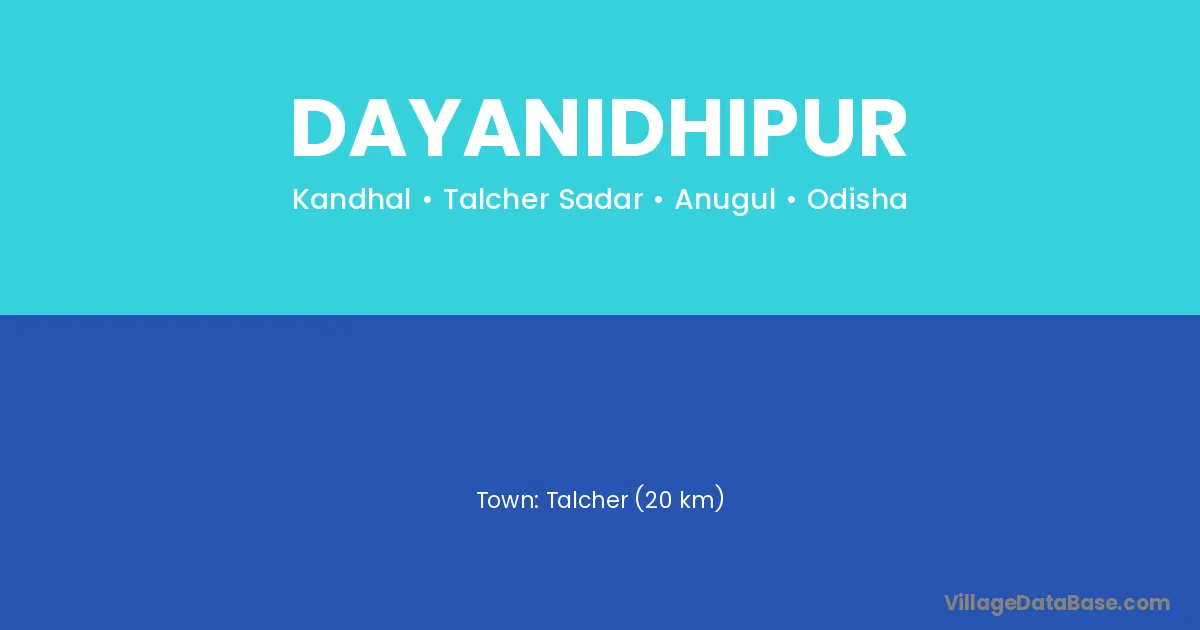 Talcher (20 km) is the nearest town to Dayanidhipur village for major economic activities and is located approximately 20 km away.