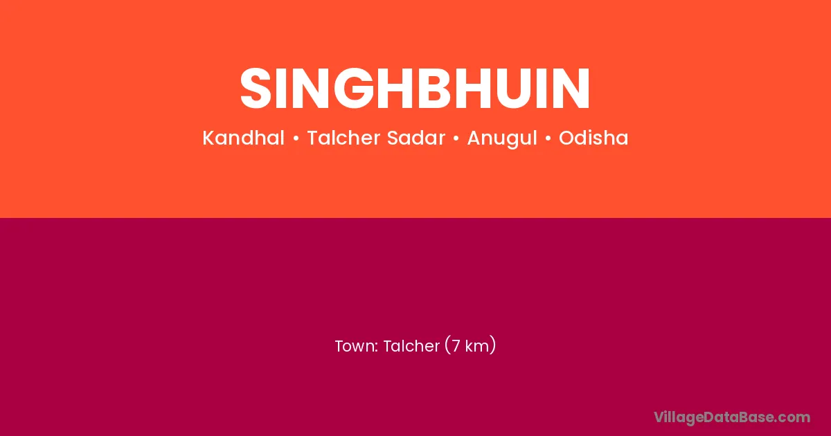 Talcher (7 km) is the nearest town to Singhbhuin village for major economic activities and is located approximately 7 km away.