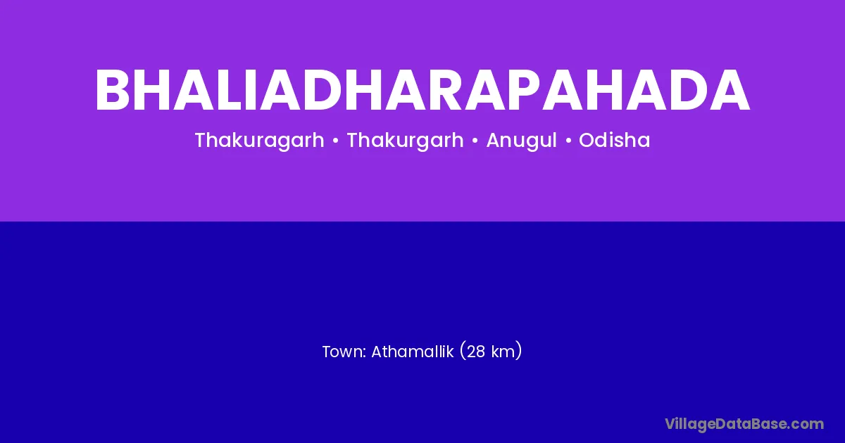 Athamallik (28 km) is the nearest town to Bhaliadharapahada village for major economic activities and is located approximately 28 km away.
