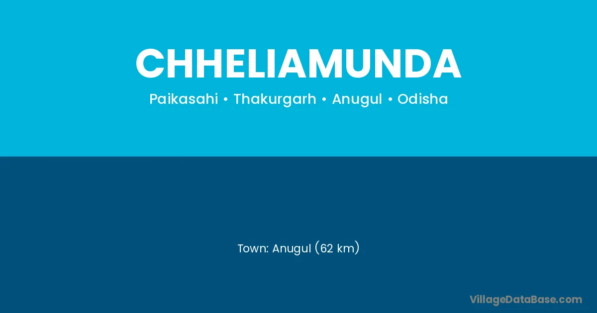Anugul (62 km) is the nearest town to Chheliamunda village for major economic activities and is located approximately 62 km away.