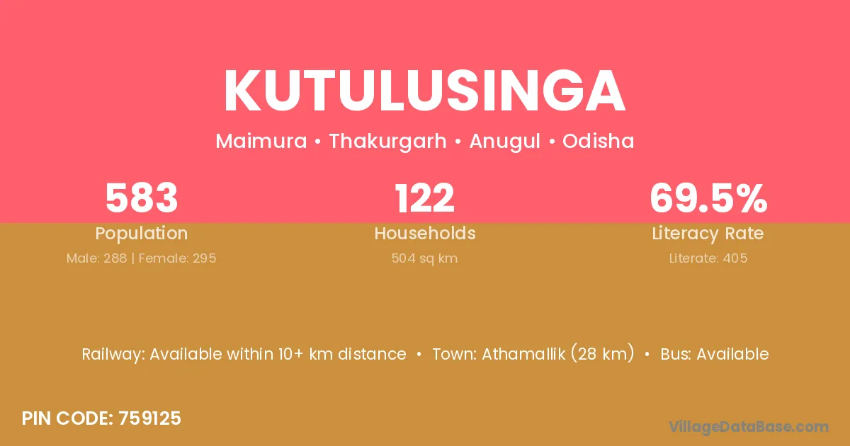 Athamallik (28 km) is the nearest town to Kutulusinga village for major economic activities and is located approximately 28 km away.
