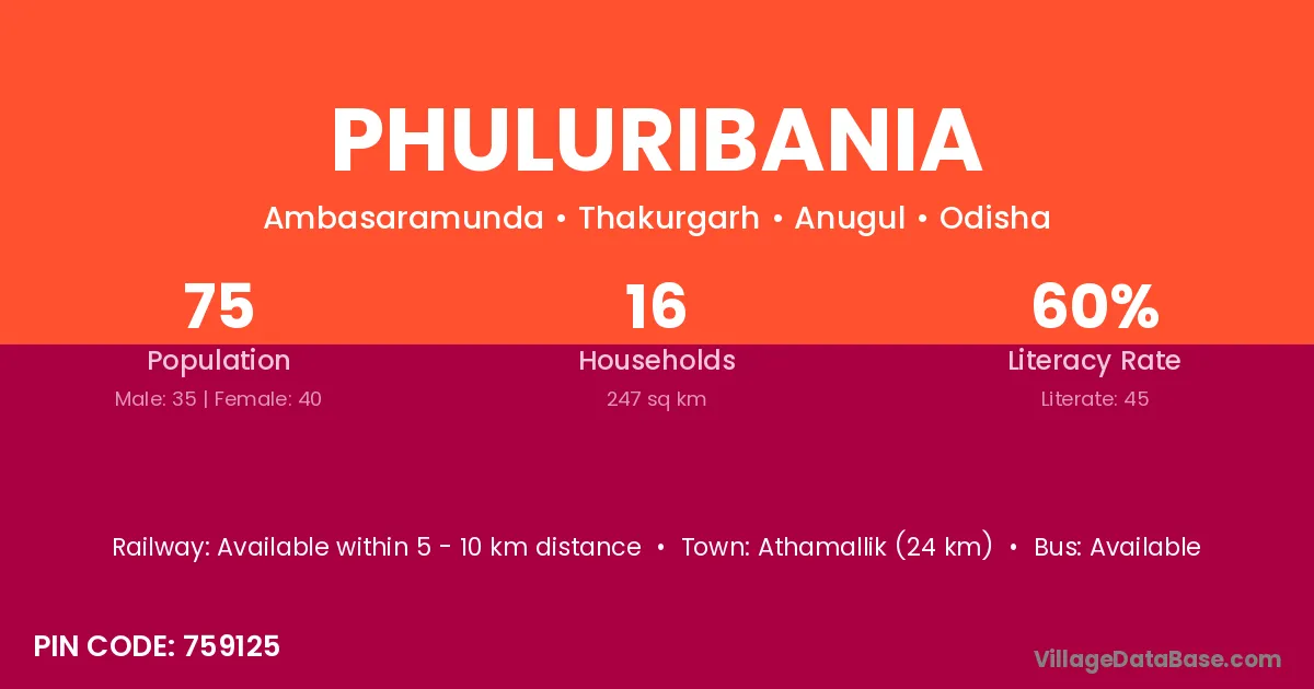 Athamallik (24 km) is the nearest town to Phuluribania village for major economic activities and is located approximately 24 km away.