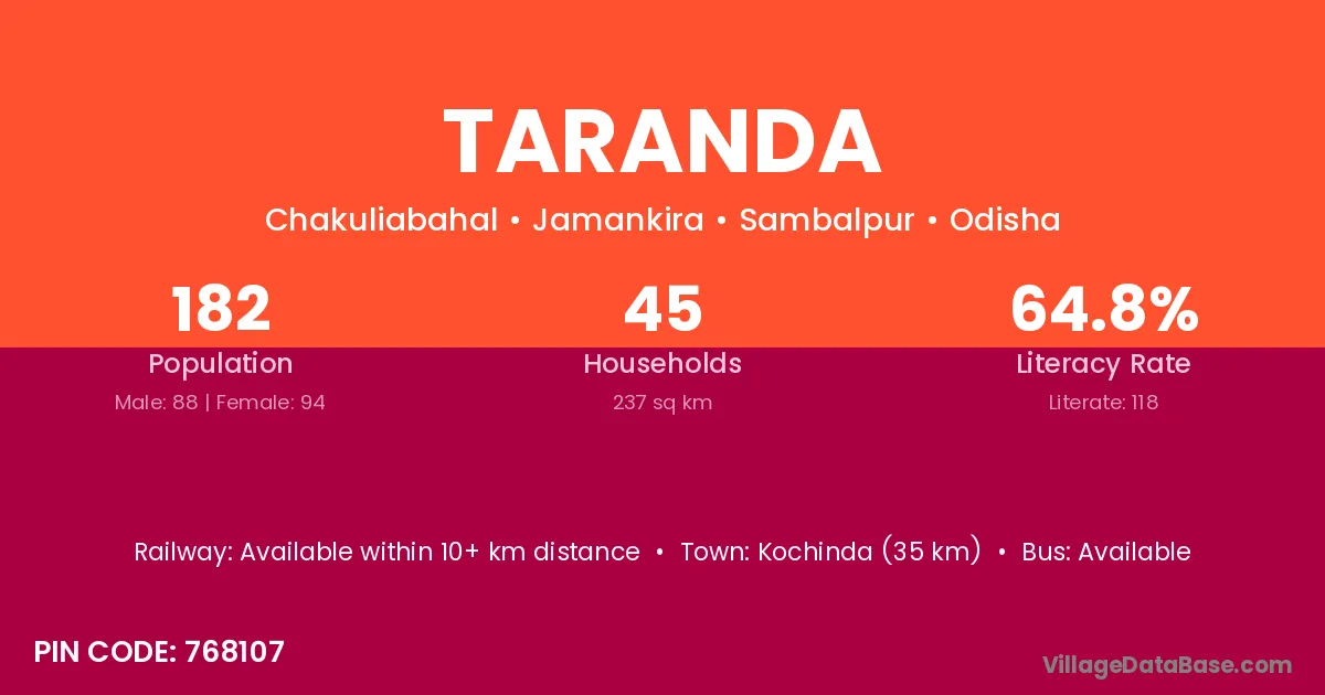 Athamallik (45 km) is the nearest town to Taranda village for major economic activities and is located approximately 45 km away.