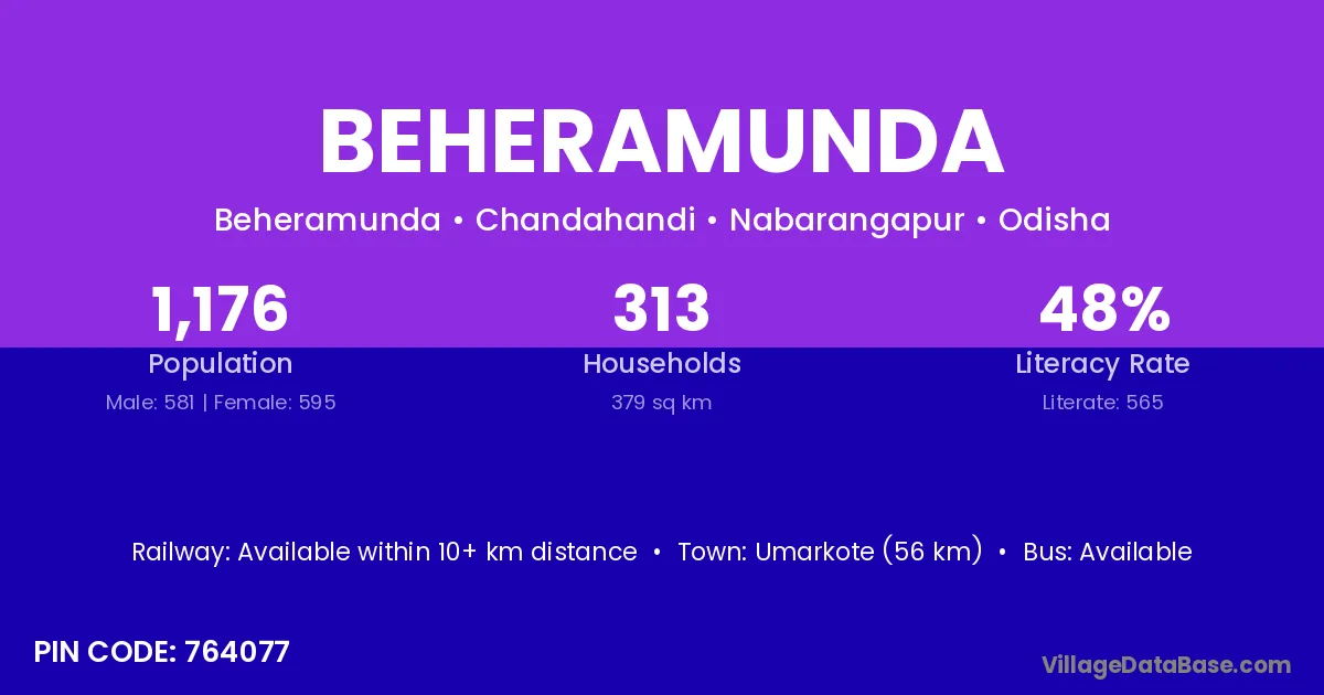 Patnagarh (24 km) is the nearest town to Beheramunda village for major economic activities and is located approximately 24 km away.