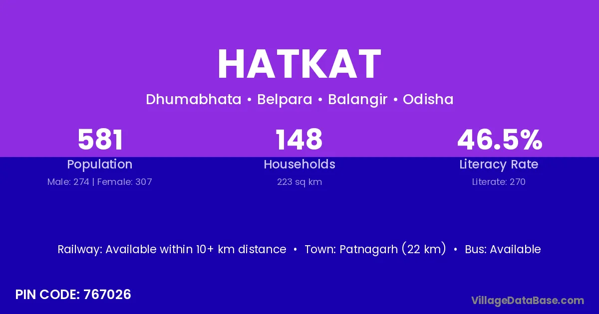 Patnagarh (22 km) is the nearest town to Hatkat village for major economic activities and is located approximately 22 km away.