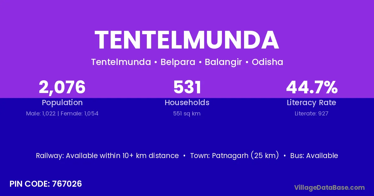 There are approximately 531 households in Tentelmunda village.