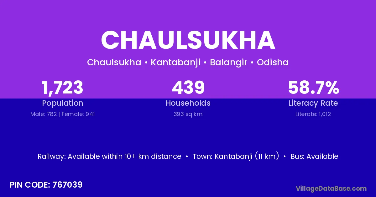 Kantabanji (11 km) is the nearest town to Chaulsukha village for major economic activities and is located approximately 11 km away.