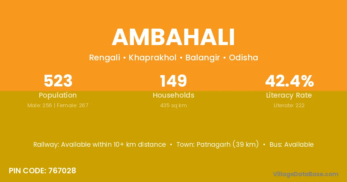 Patnagarh (39 km) is the nearest town to Ambahali village for major economic activities and is located approximately 39 km away.