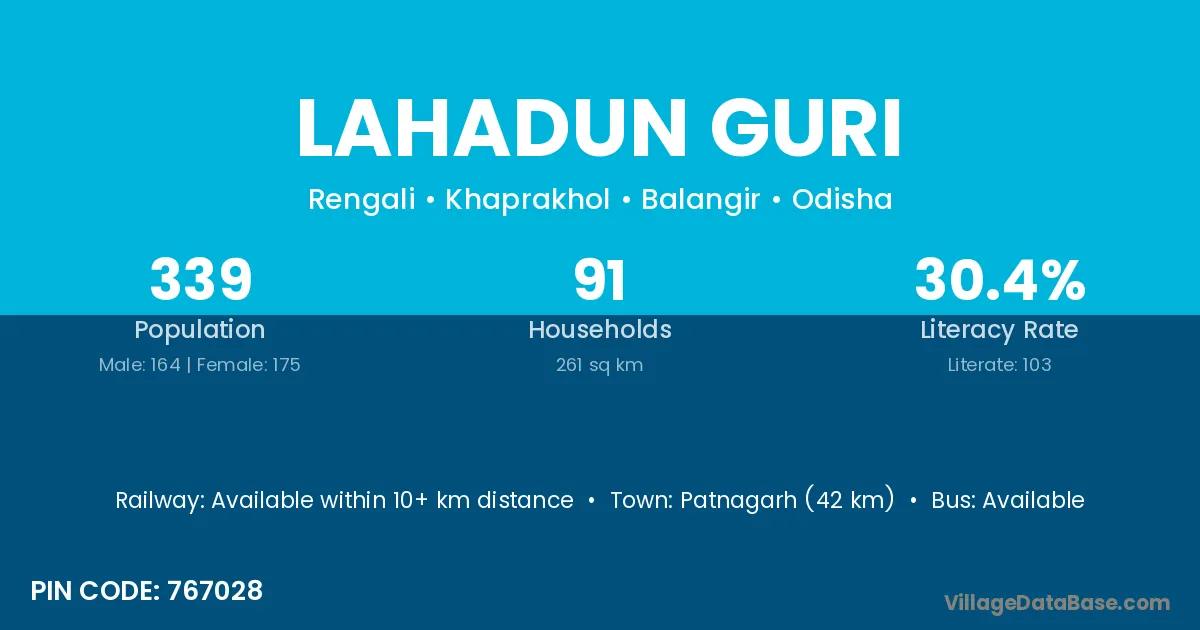 Patnagarh (42 km) is the nearest town to Lahadun Guri village for major economic activities and is located approximately 42 km away.