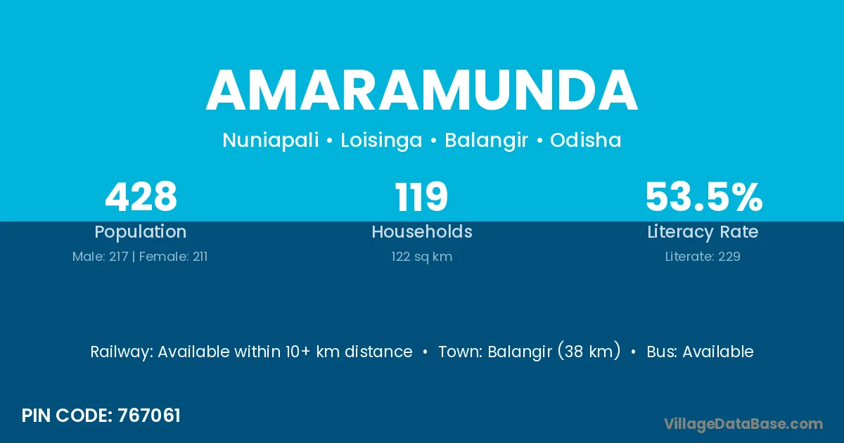 Balangir (38 km) is the nearest town to Amaramunda village for major economic activities and is located approximately 38 km away.