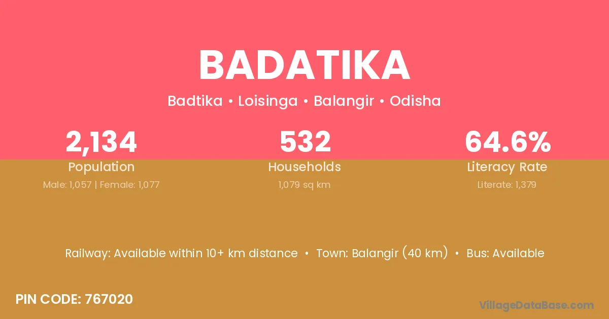 Balangir (40 km) is the nearest town to Badatika village for major economic activities and is located approximately 40 km away.