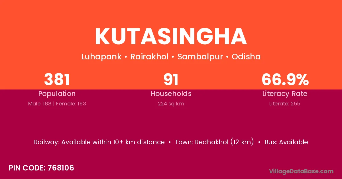 Kutasingha village has a total population of 3,120 people, of which 1,568 are males and 1,552 are females.