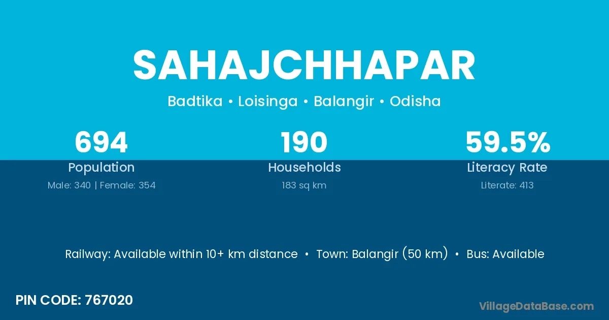 Balangir (50 km) is the nearest town to Sahajchhapar village for major economic activities and is located approximately 50 km away.